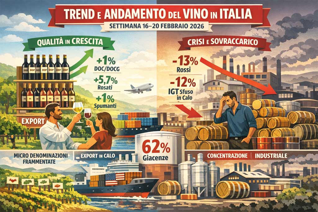 Trend e andamento del vino in Italia — Settimana 16–20 febbraio 2026 By : adminTrend e andamento del vino in Italia — Settimana 16–20 febbraio 202620/02/2026