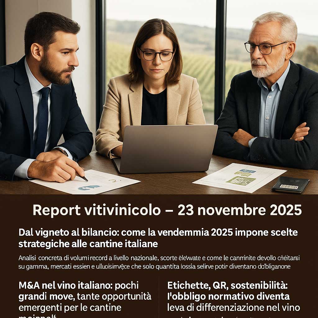 • Il contesto normativo‑etichettatura si evolve: crescono gli obblighi ambientali, informativi e digitali (QR, tracciabilità), che nelle cantine diventano non solo compliance ma potenziale leva di posizionamento. (Fonte: approfondimento settore)