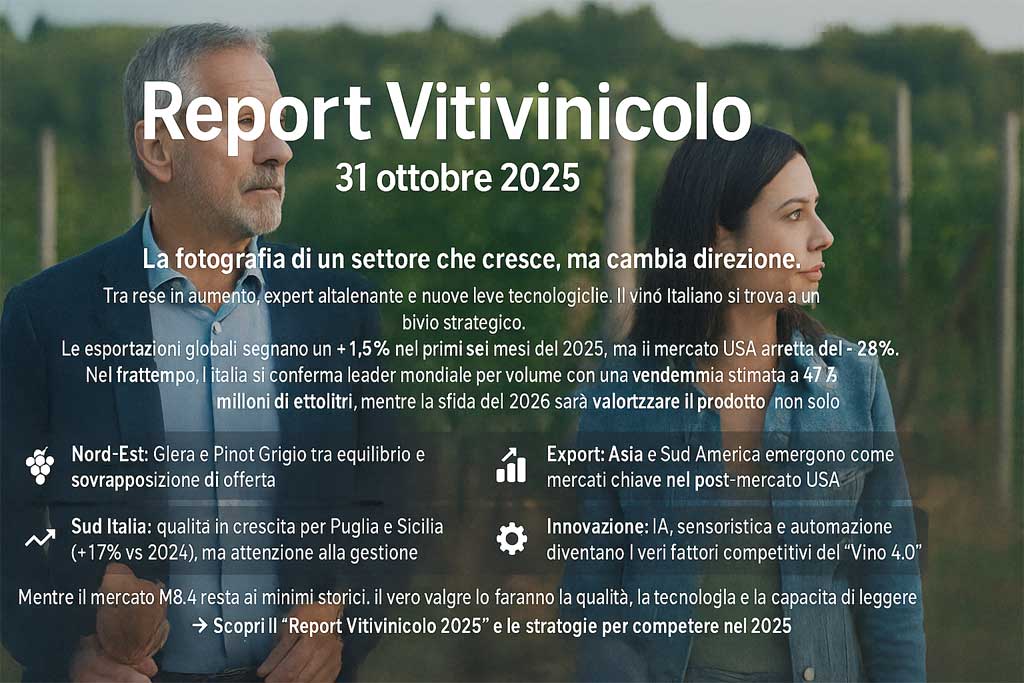 - Scorte (30/09/2025): 36,0 Mhl vino (Italia).