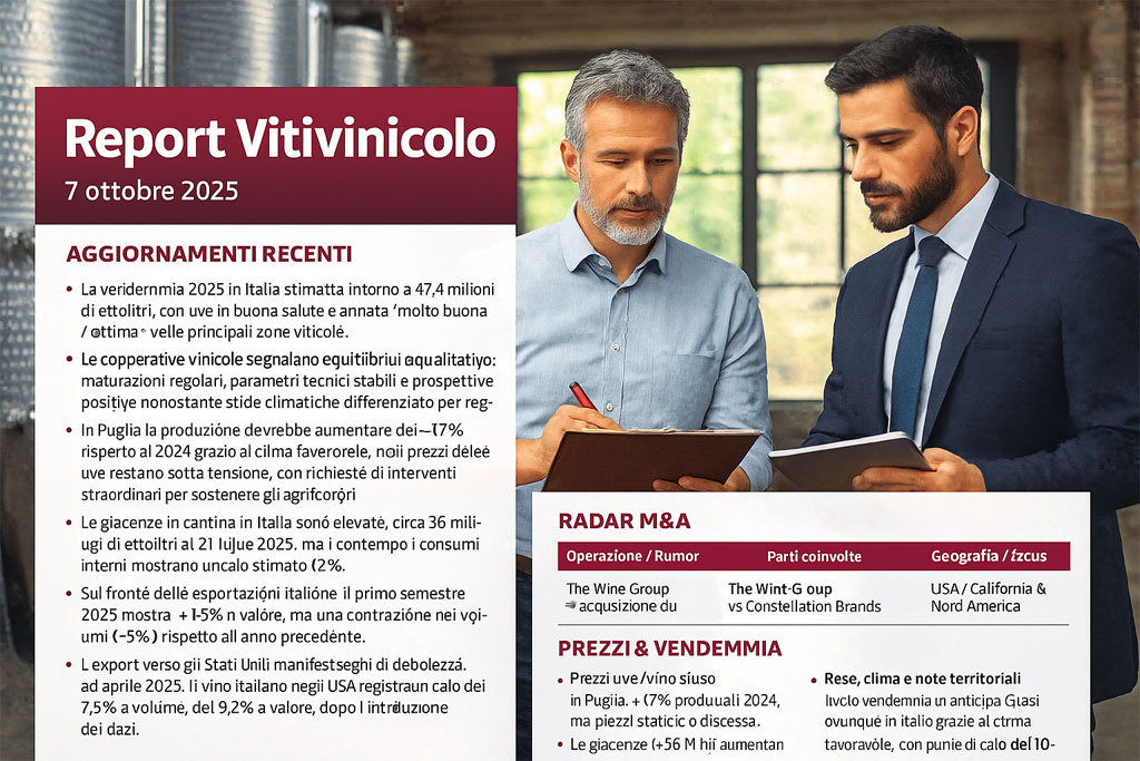 Ecco il briefing quotidiano aggiornato sul settore vino / cantine, con dati recenti e spunti strategici.