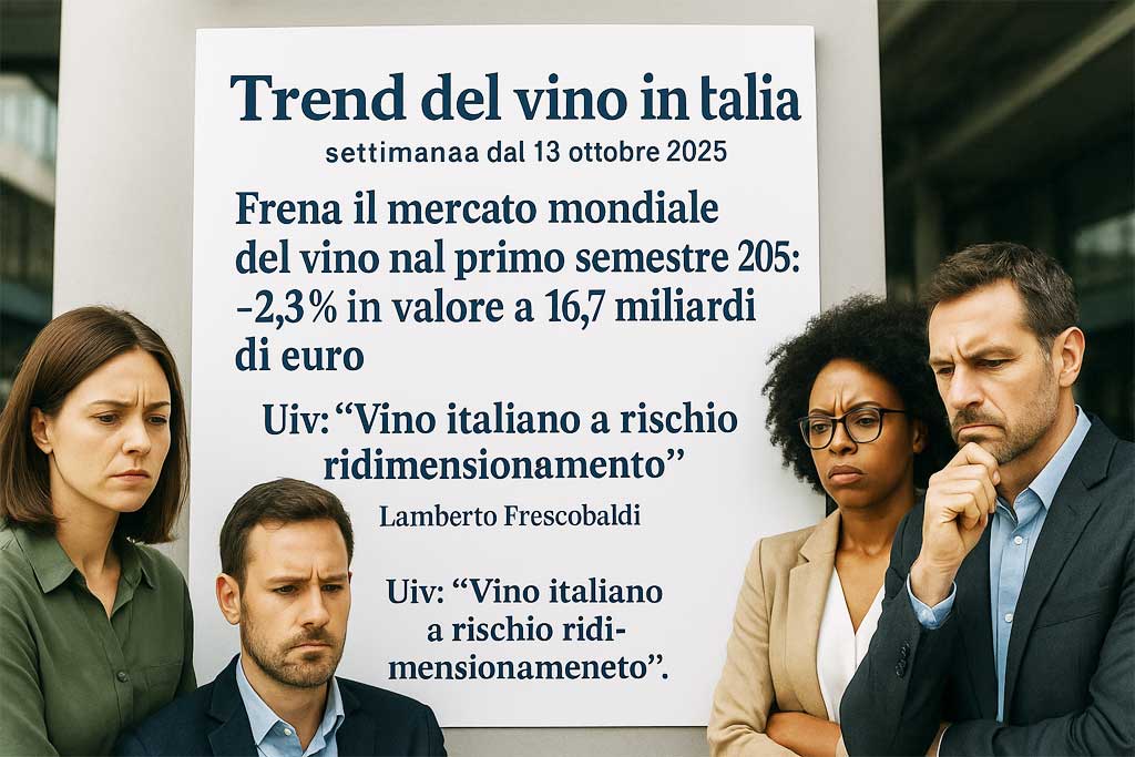 - Dazi USA: costo stimato 61 mln € per l’Italia nei primi mesi; prezzo medio del vino italiano negli USA a luglio 2025: -13,5%, strategia di assorbimento del dazio (non sostenibile per tutti).